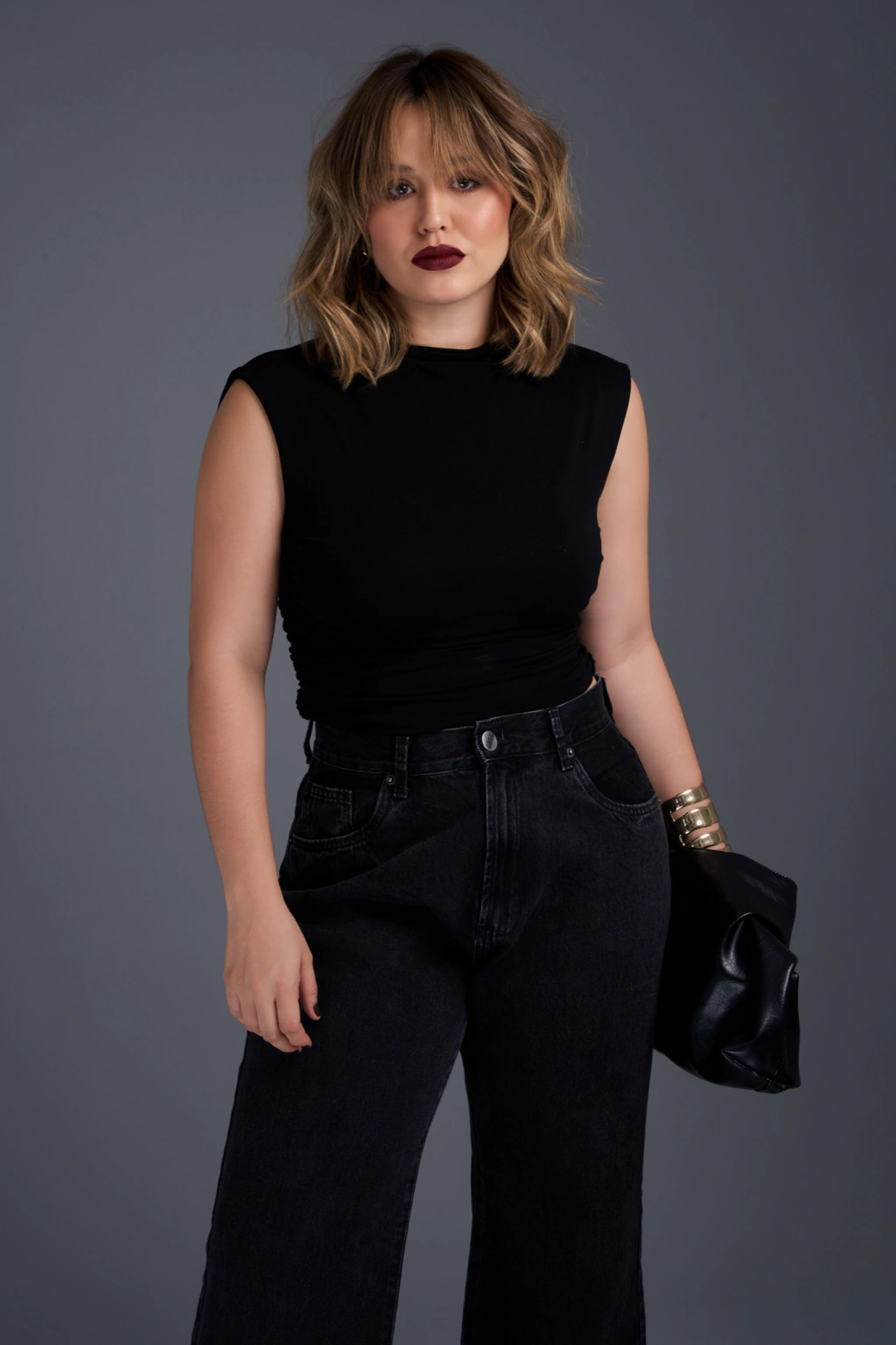 Dica de styling: Combine o cropped com peças de alfaiataria de cintura alta para um visual sofisticado e moderno. Para um toque mais casual, aposte em jeans de corte reto ou saia midi fluida. Complete a produção com sandálias de tiras finas ou scarpins, equilibrando elegância e conforto.