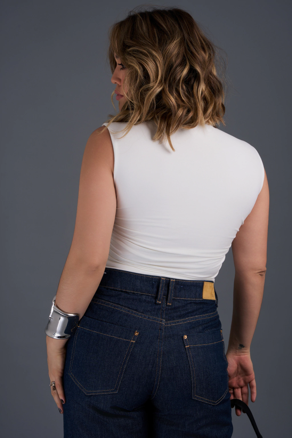 O cropped apresenta modelagem ajustada ao corpo, valorizando a silhueta com elegância e modernidade. Confeccionado em malha premium com dupla camada, a peça traz gola alta e detalhe franzido lateral que adicionam versatilidade e charme ao design. Oferece maior sustentação, segurança e conforto, unindo estilo e praticidade em uma única peça.